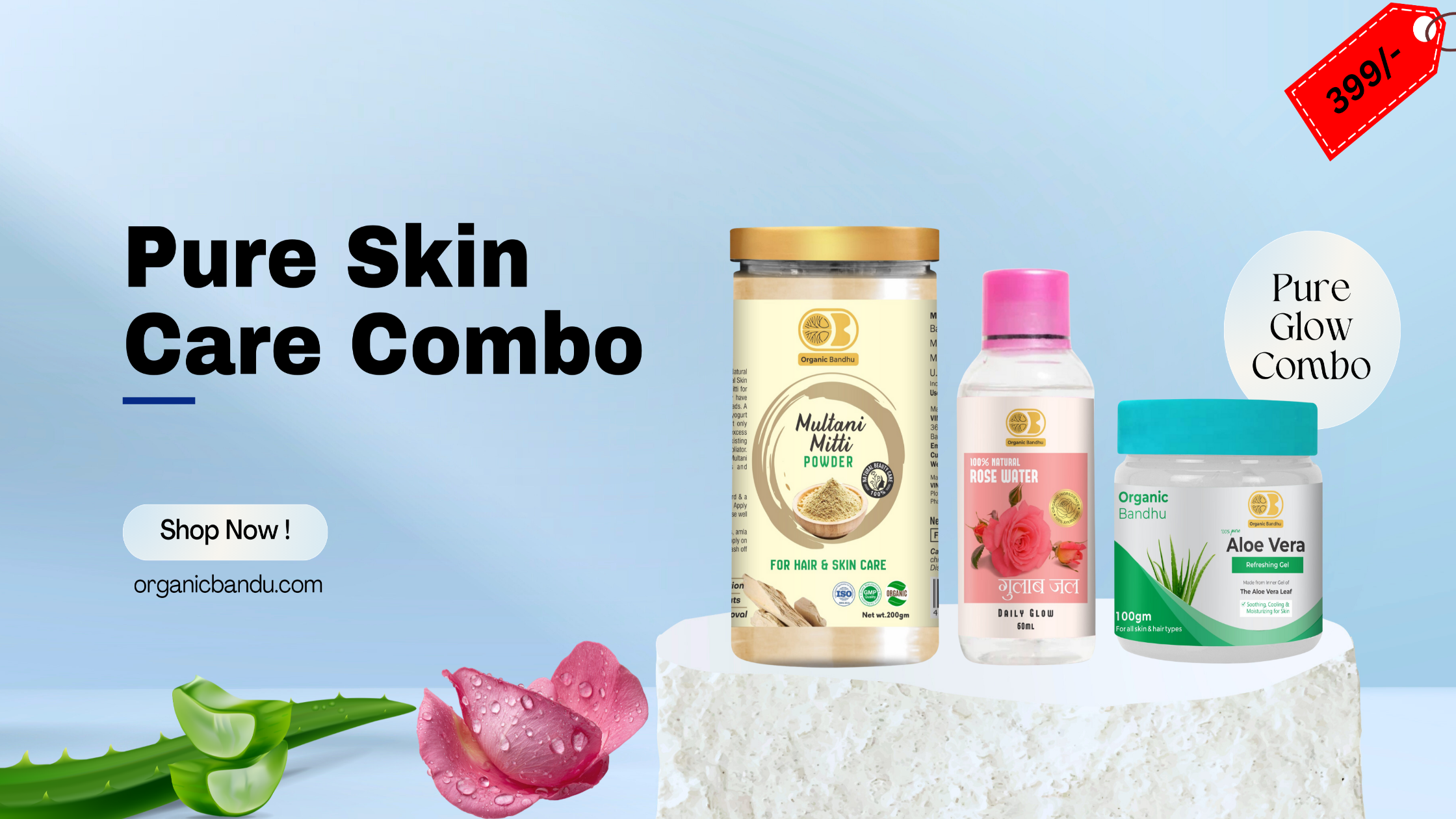 Limited OfferMultani Mitti, Rose Water & Aloe Vera Combo